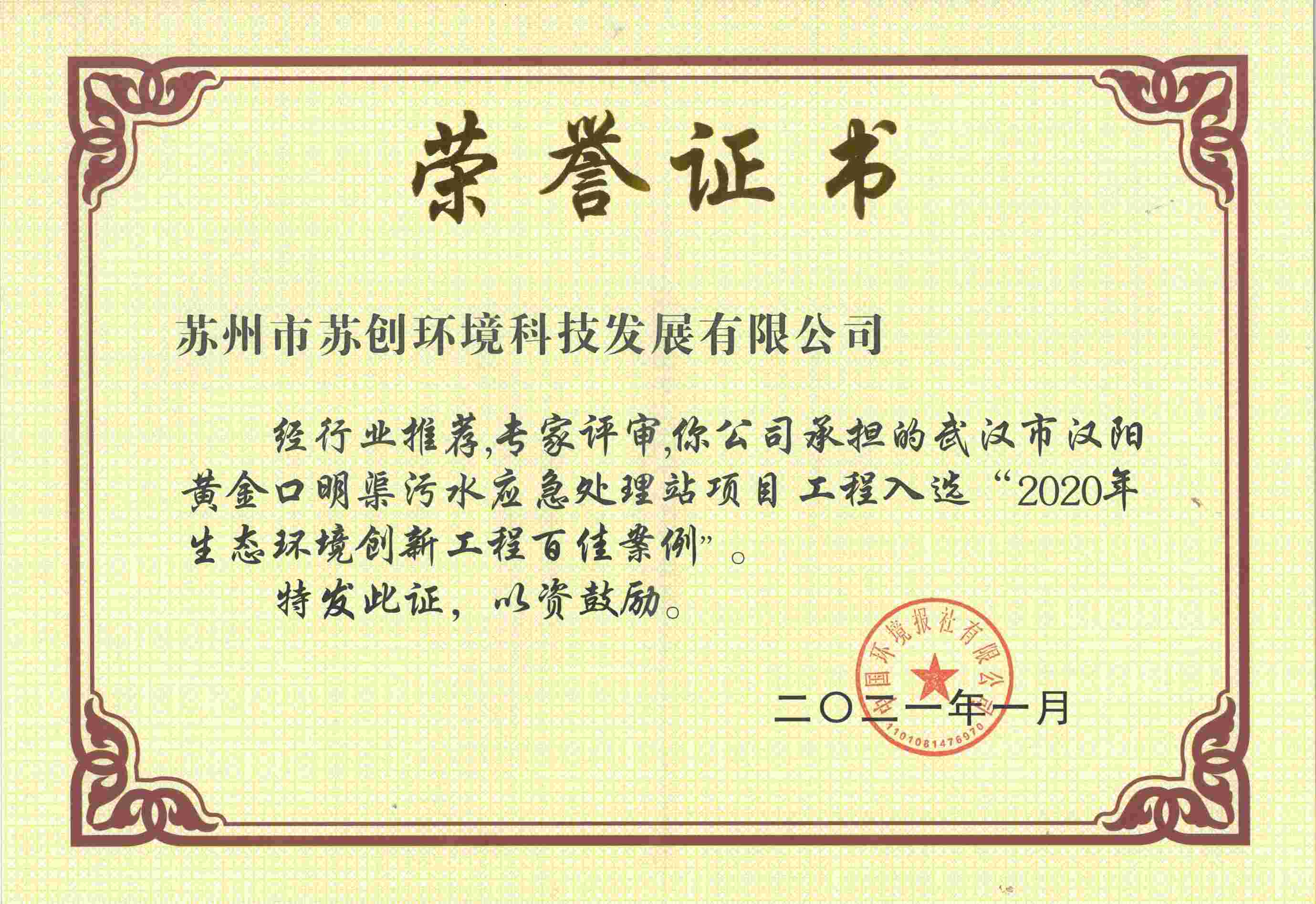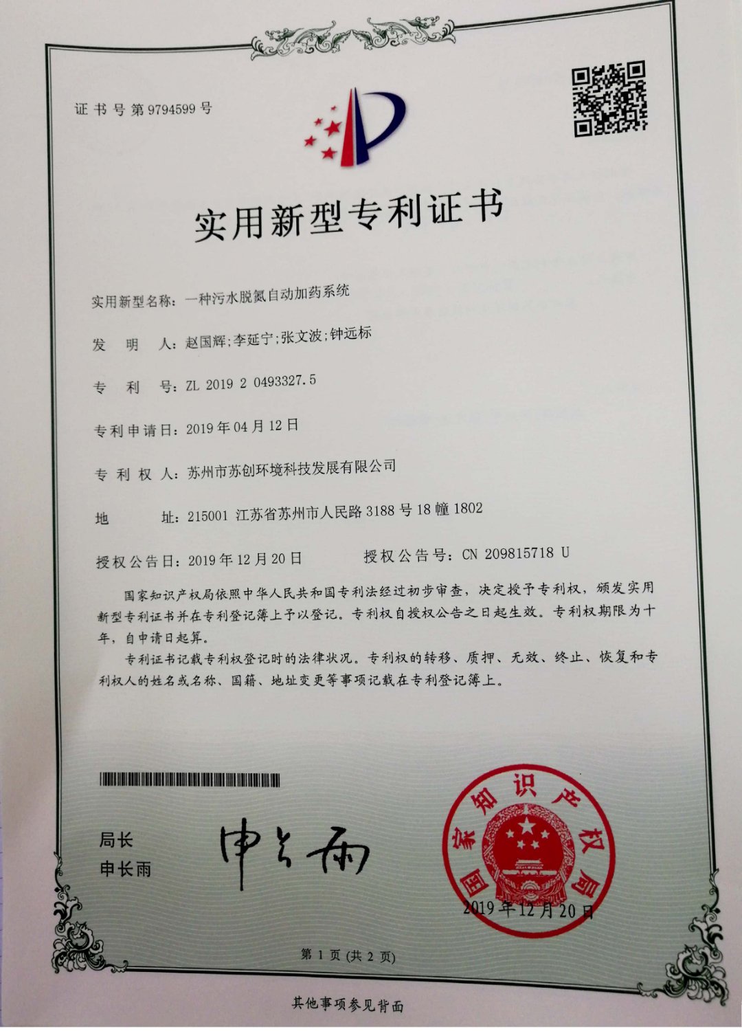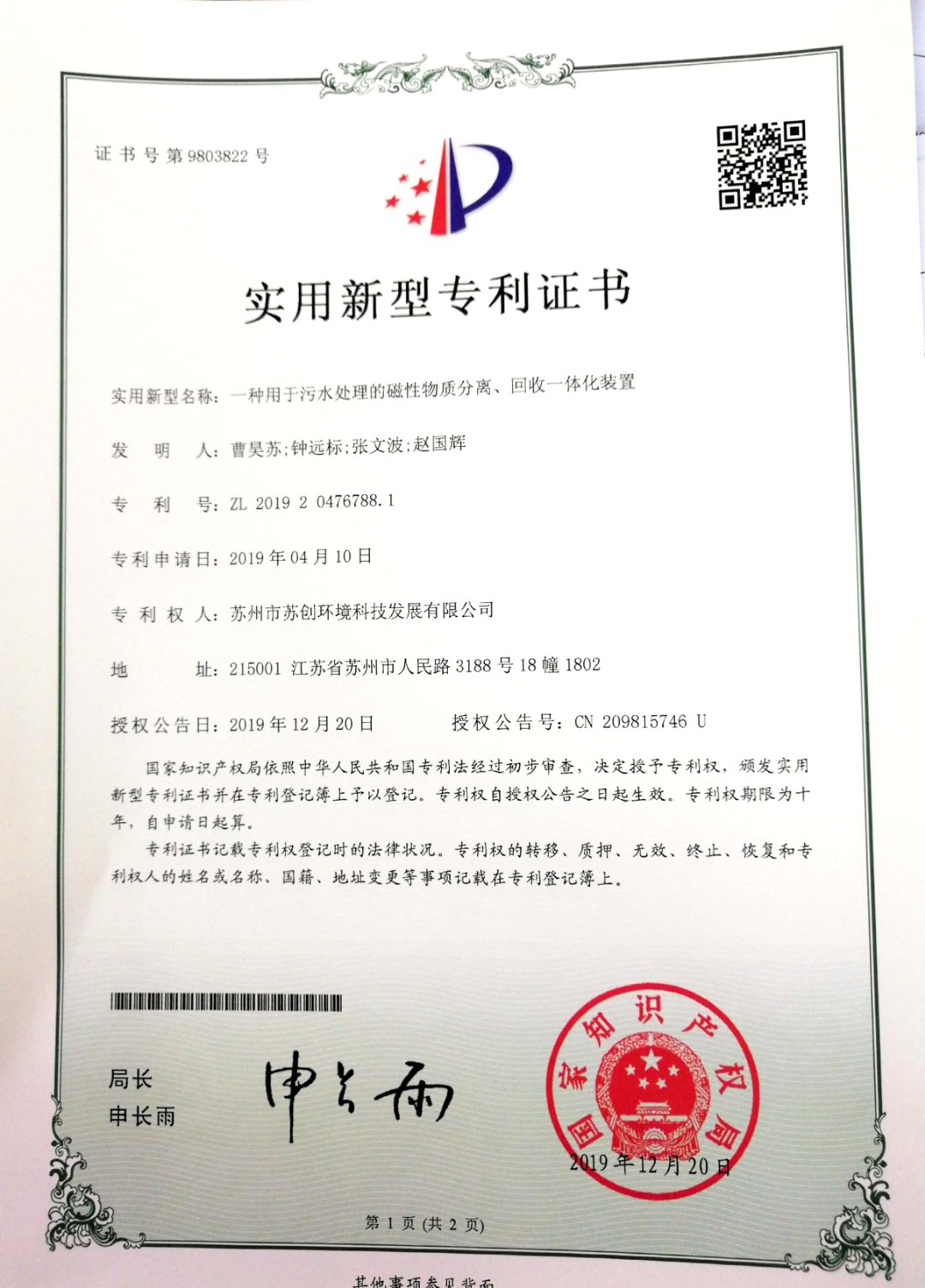 磁分離+反硝化+曝氣生物濾池一體化裝備 采用磁沉淀和曝氣生物濾池相結(jié)合的水體凈化工藝蘇創(chuàng)環(huán)境 · 專利與榮譽成果